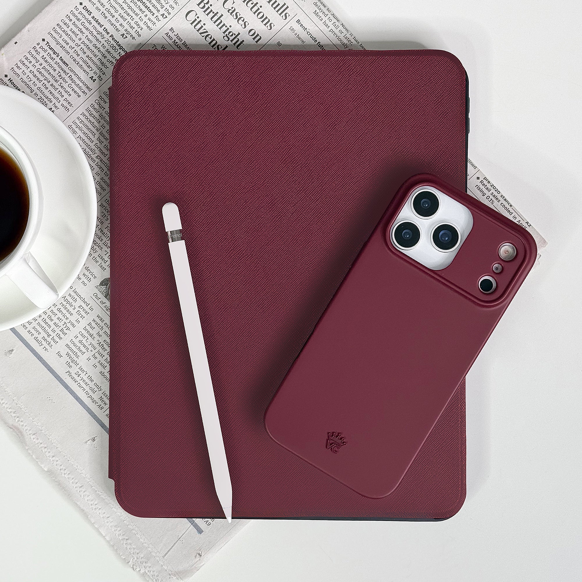 Elevate your everyday with this folio style iPad case featuring a Vegan Saffiano Leather exterior, 3 adjustable stand settings, and a charging compatible stylus holder*.