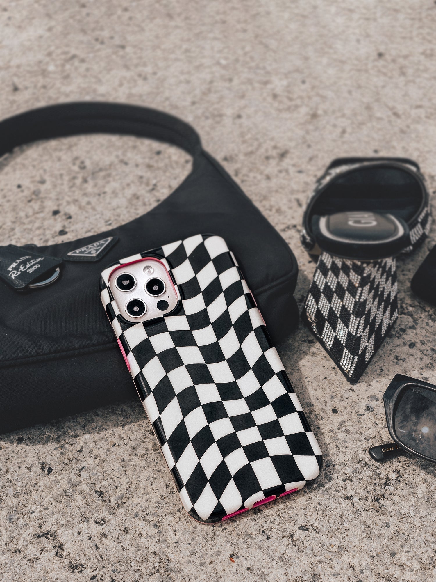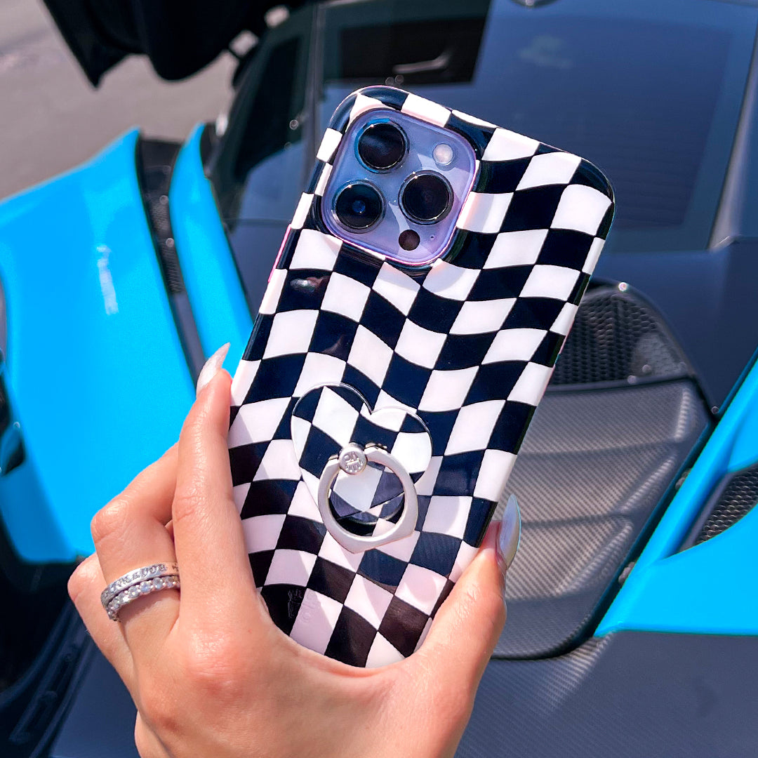 Start your engines! This collection features a groovy high gloss checker pattern and contrasting pink bumpers.
