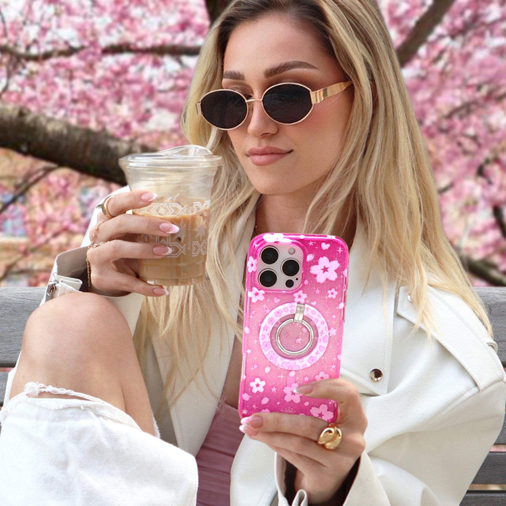 Pink Cherry Blossom MagSafe Grip Ring