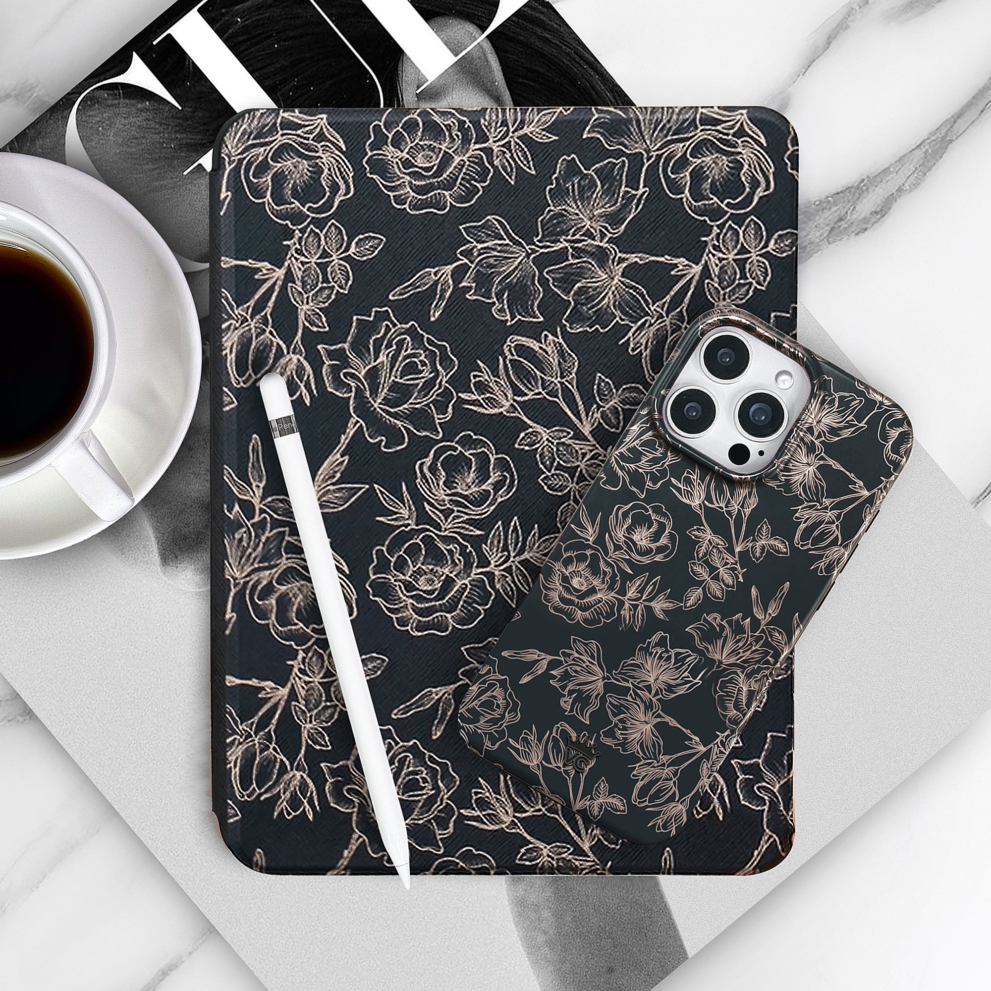 Floral Rose Gold Chrome iPad Case