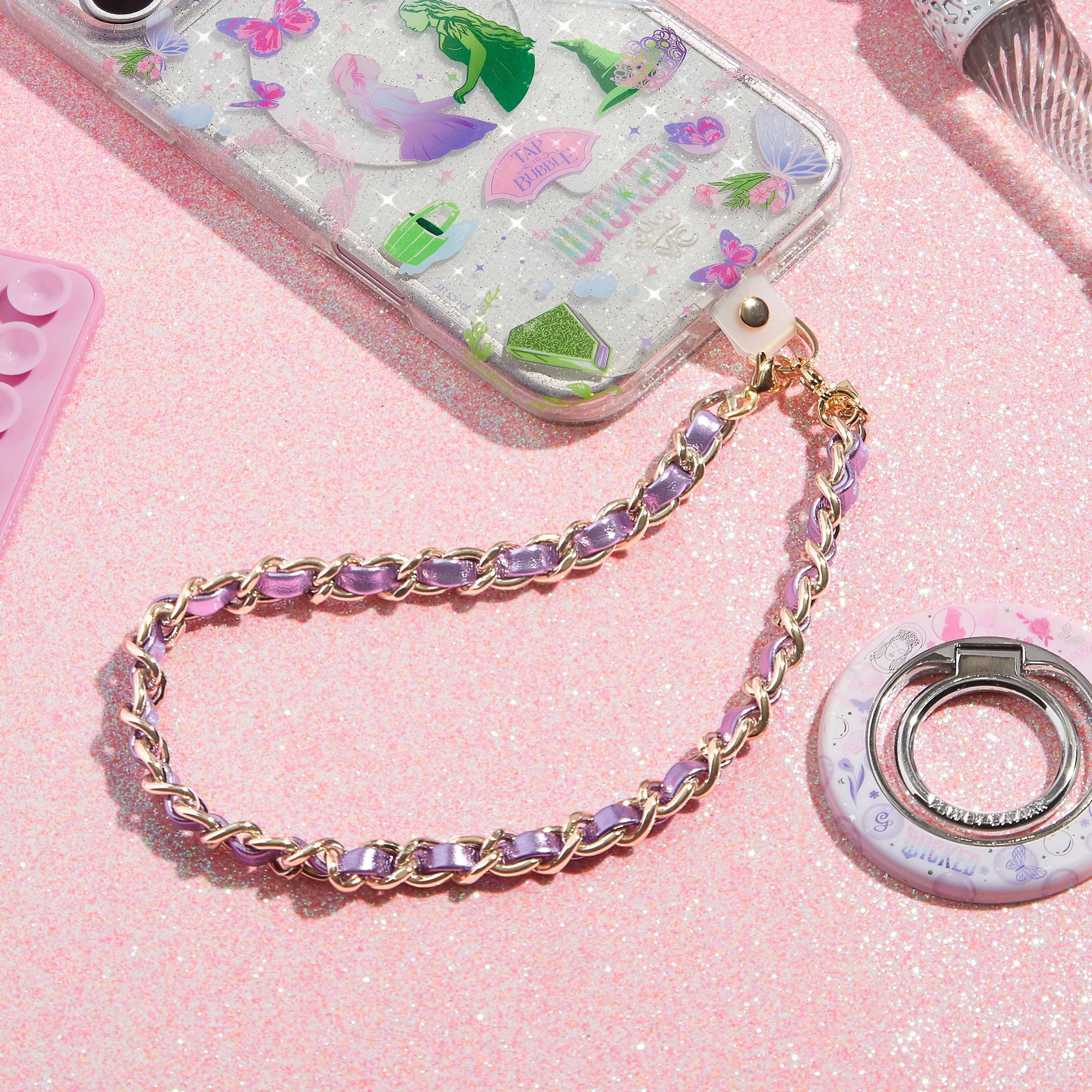 Metallic Purple Leather Chain Phone Charm