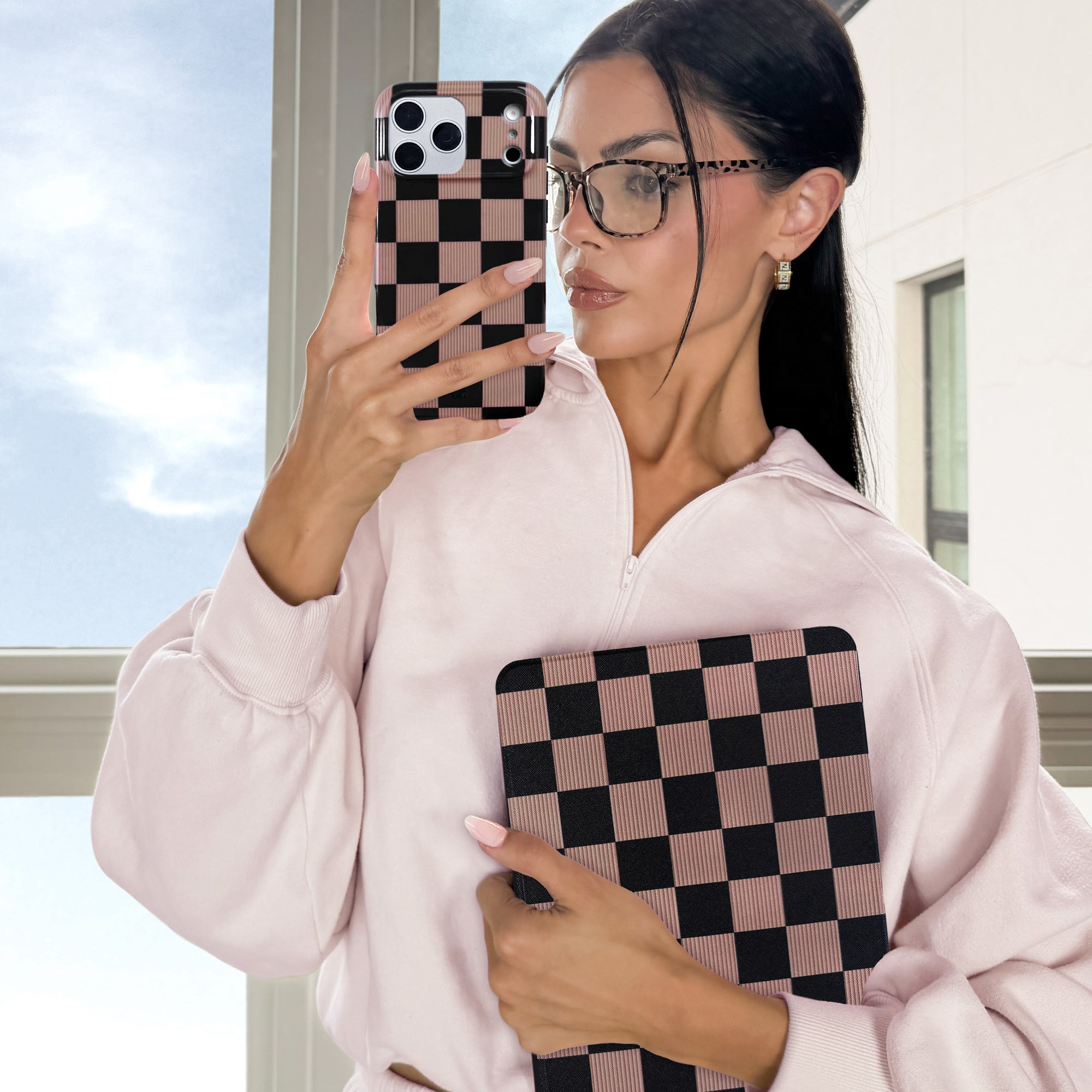 Elevate your everyday with this folio style iPad case featuring a Vegan Saffiano Leather exterior, 3 adjustable stand settings, and a charging compatible stylus holder*.