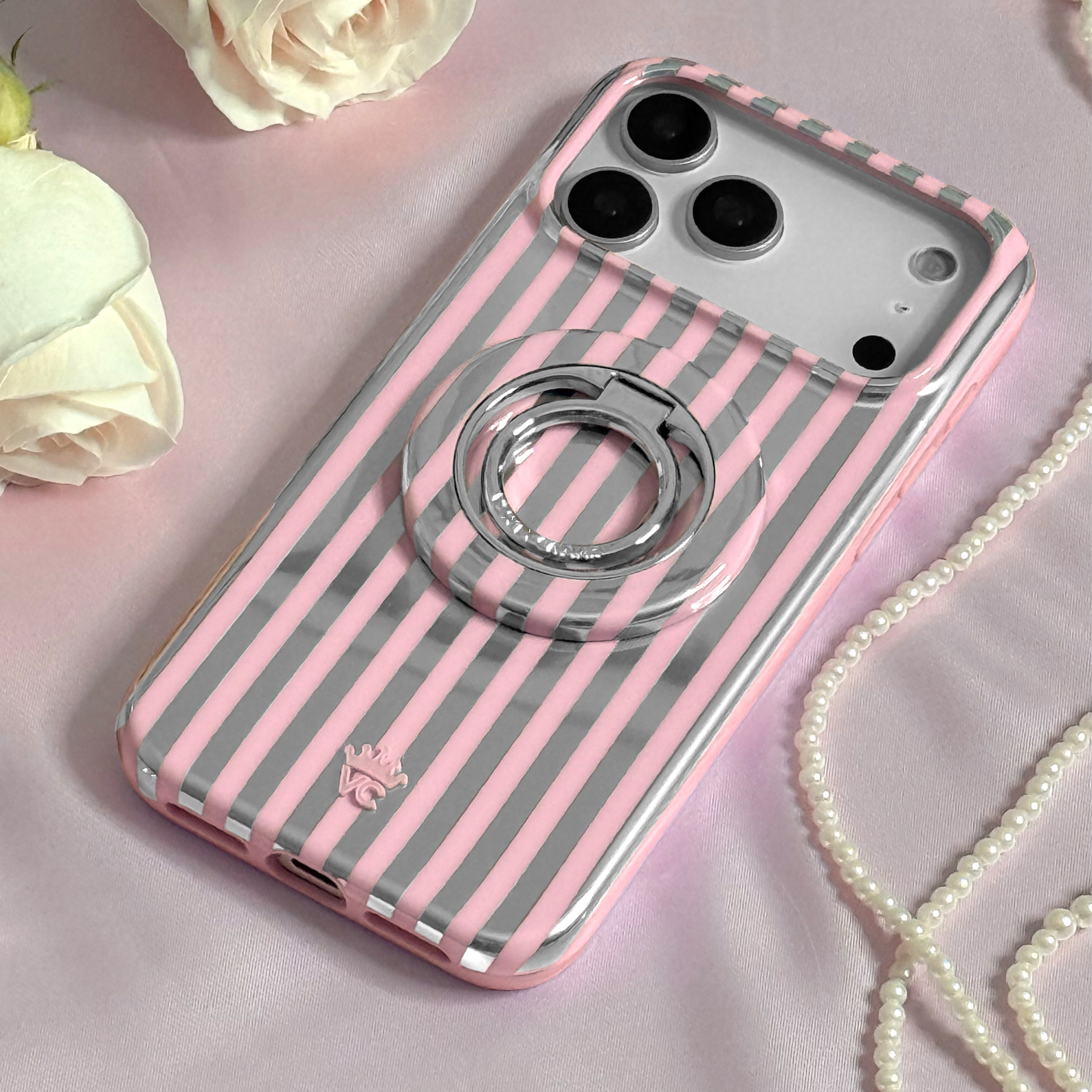 Pink Chrome Stripes MagSafe Grip Ring