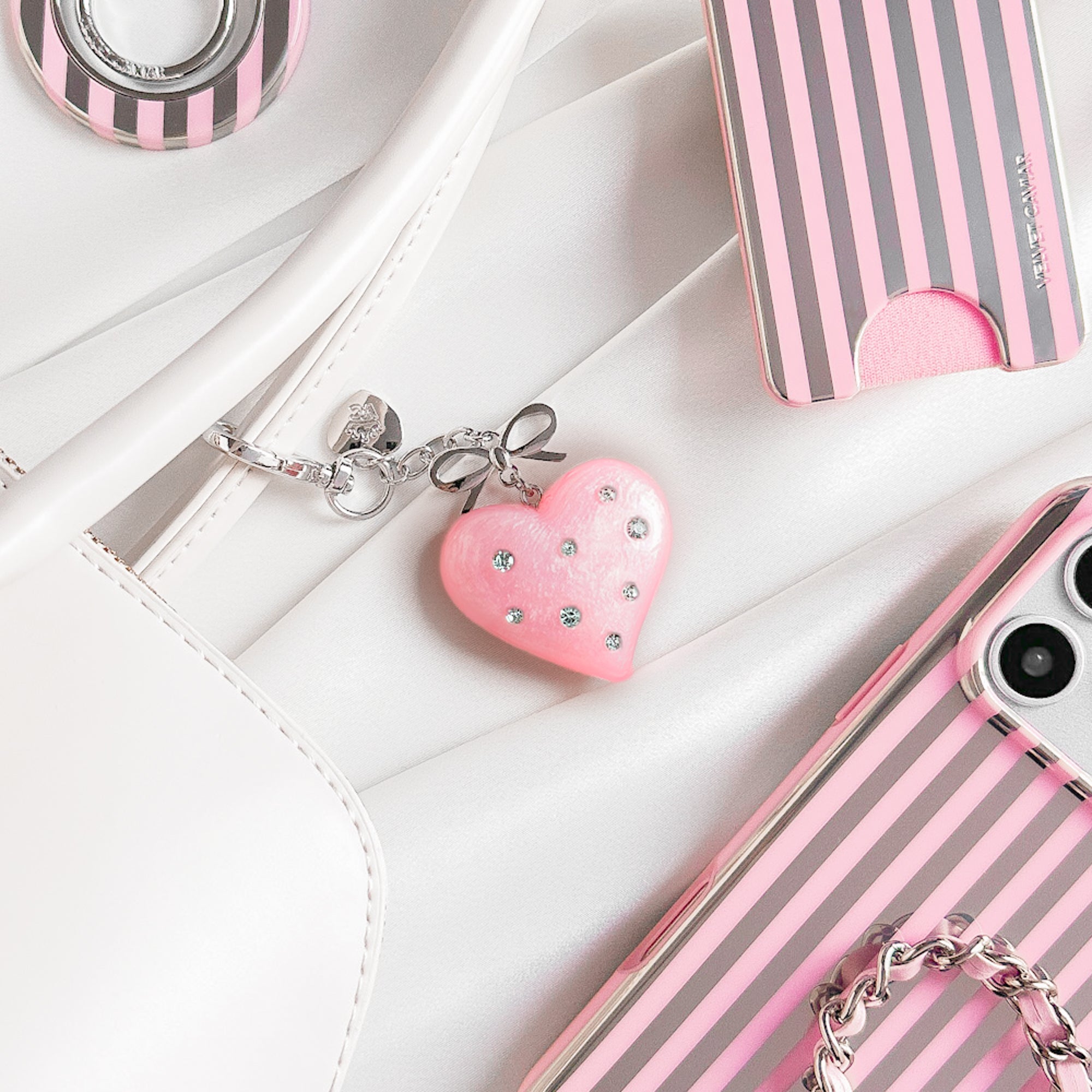 Pink Crystal Heart Bag Charm