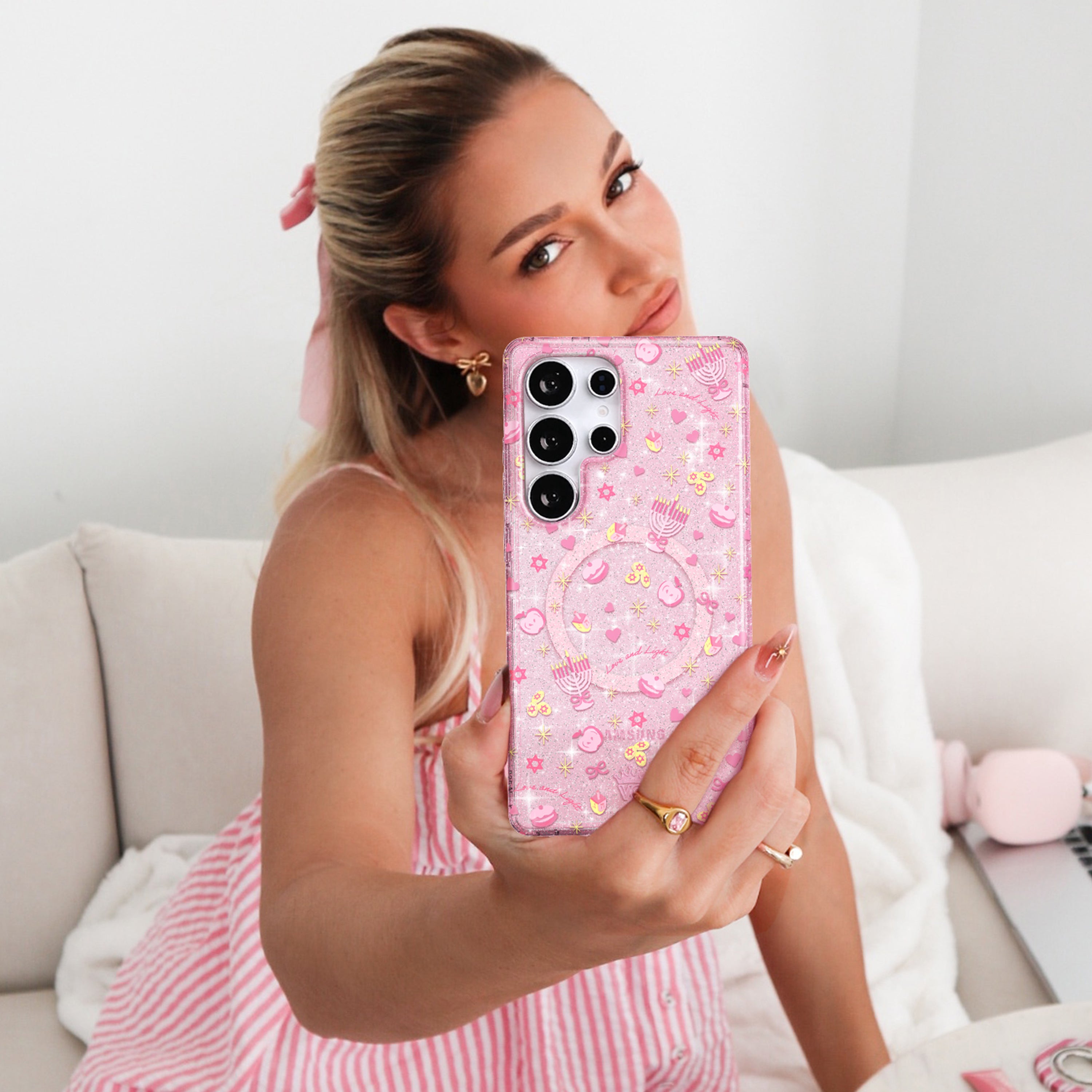 Pink Hanukkah Glitter Samsung Case