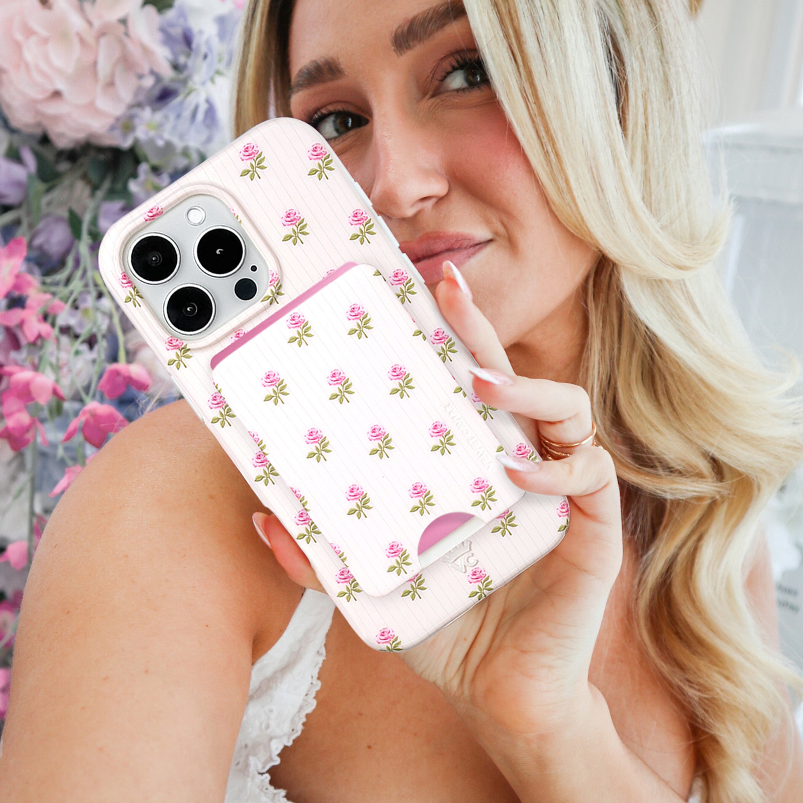 Pink Peony Floral MagSafe Wallet