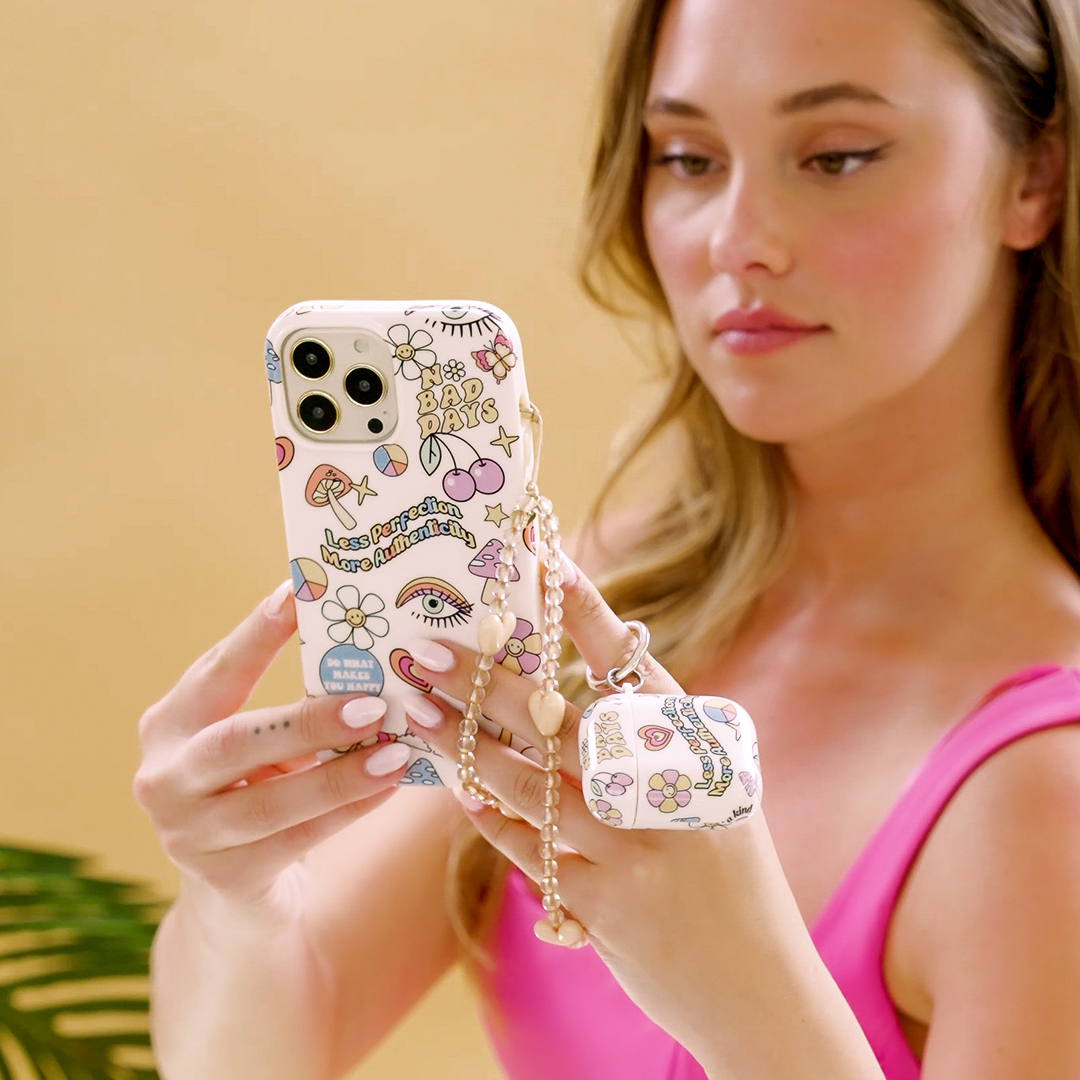 Join The Self Love Club! This Limited Edition case features daily affirmations and hand drawn designs on a glossy beige base.