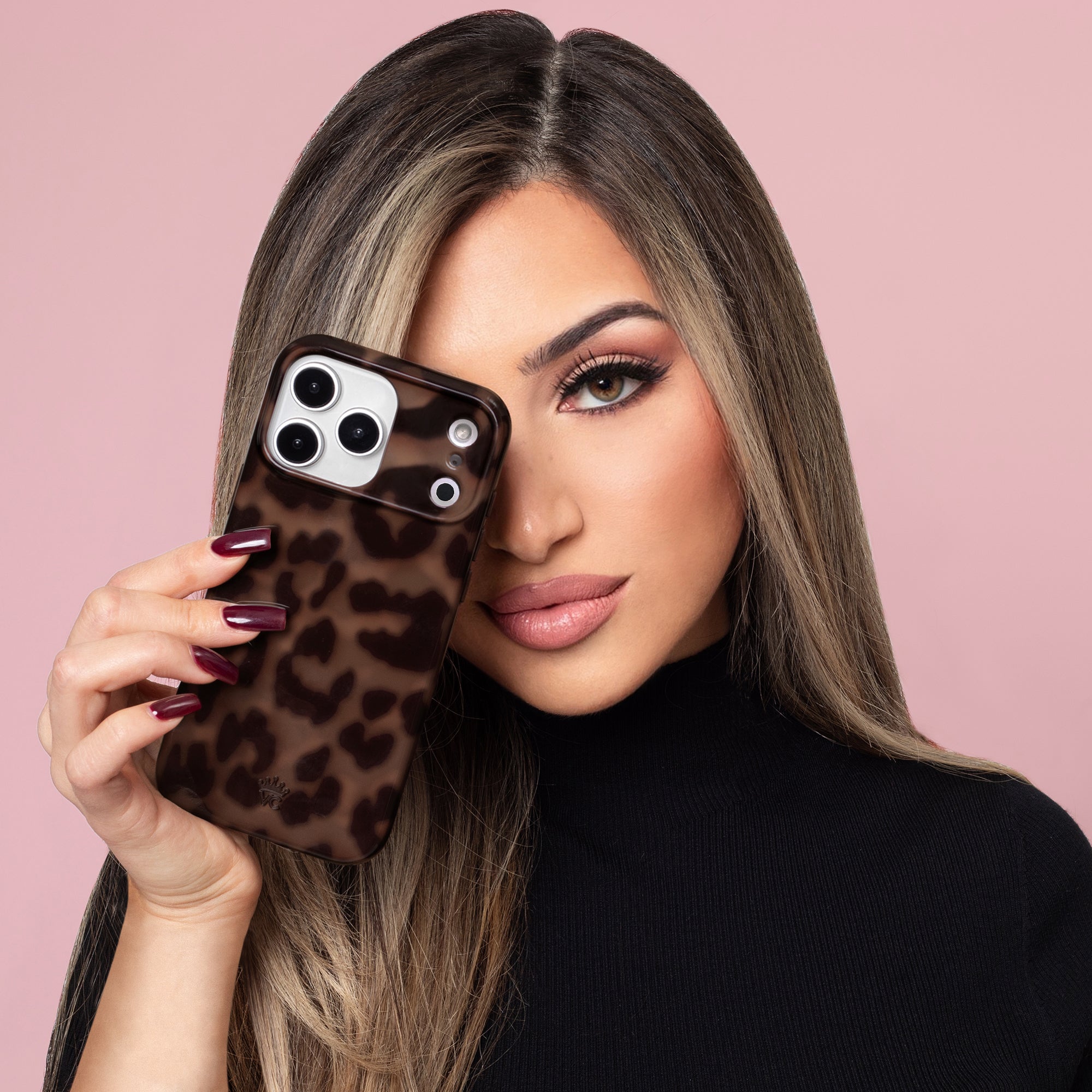 Instant It Girl! Turn headsin this glossy MagSafe case featuring deep brown leopard spots on a dimensional chocolate brown base.