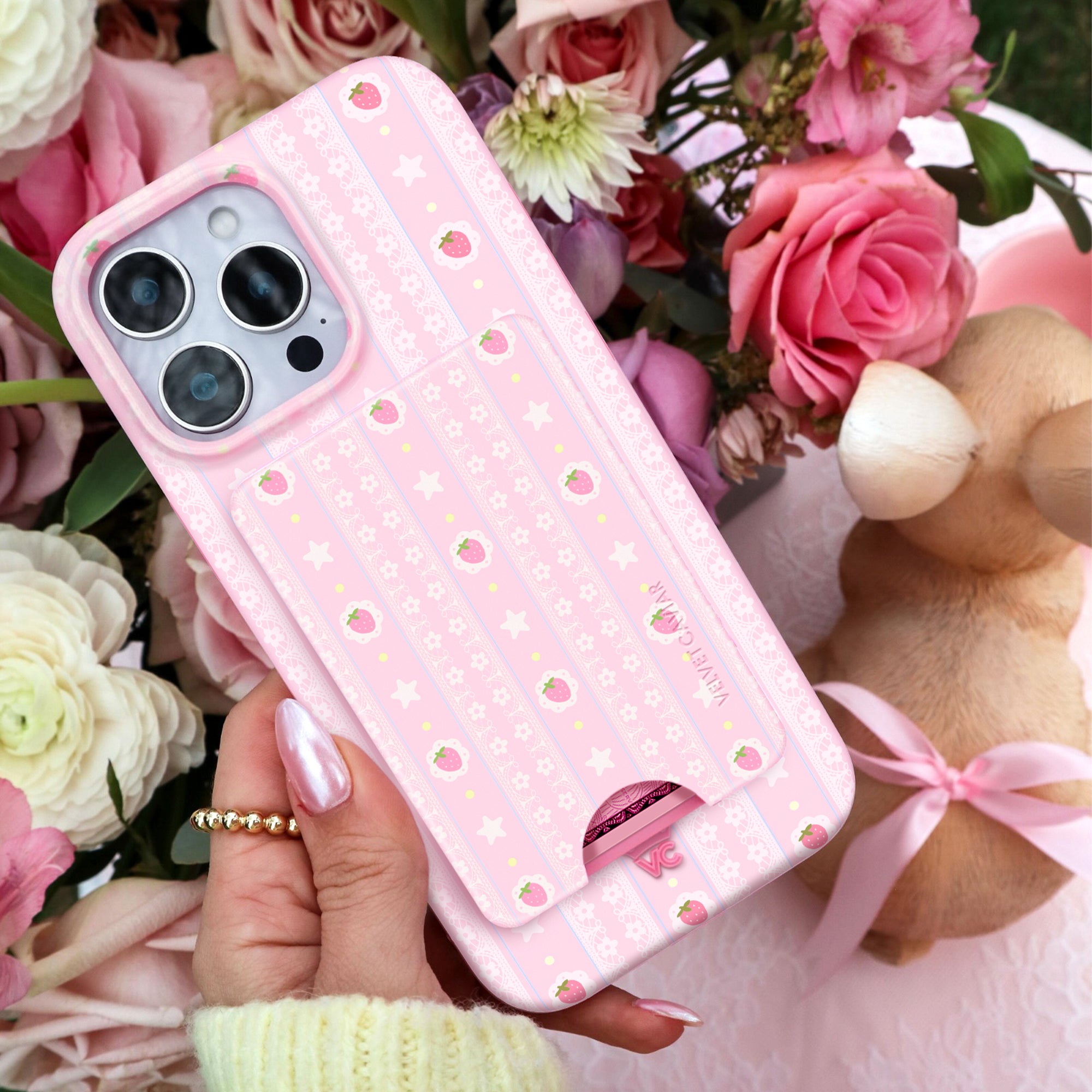 Strawberry Macaron iPhone Bundle Set - Wallet
