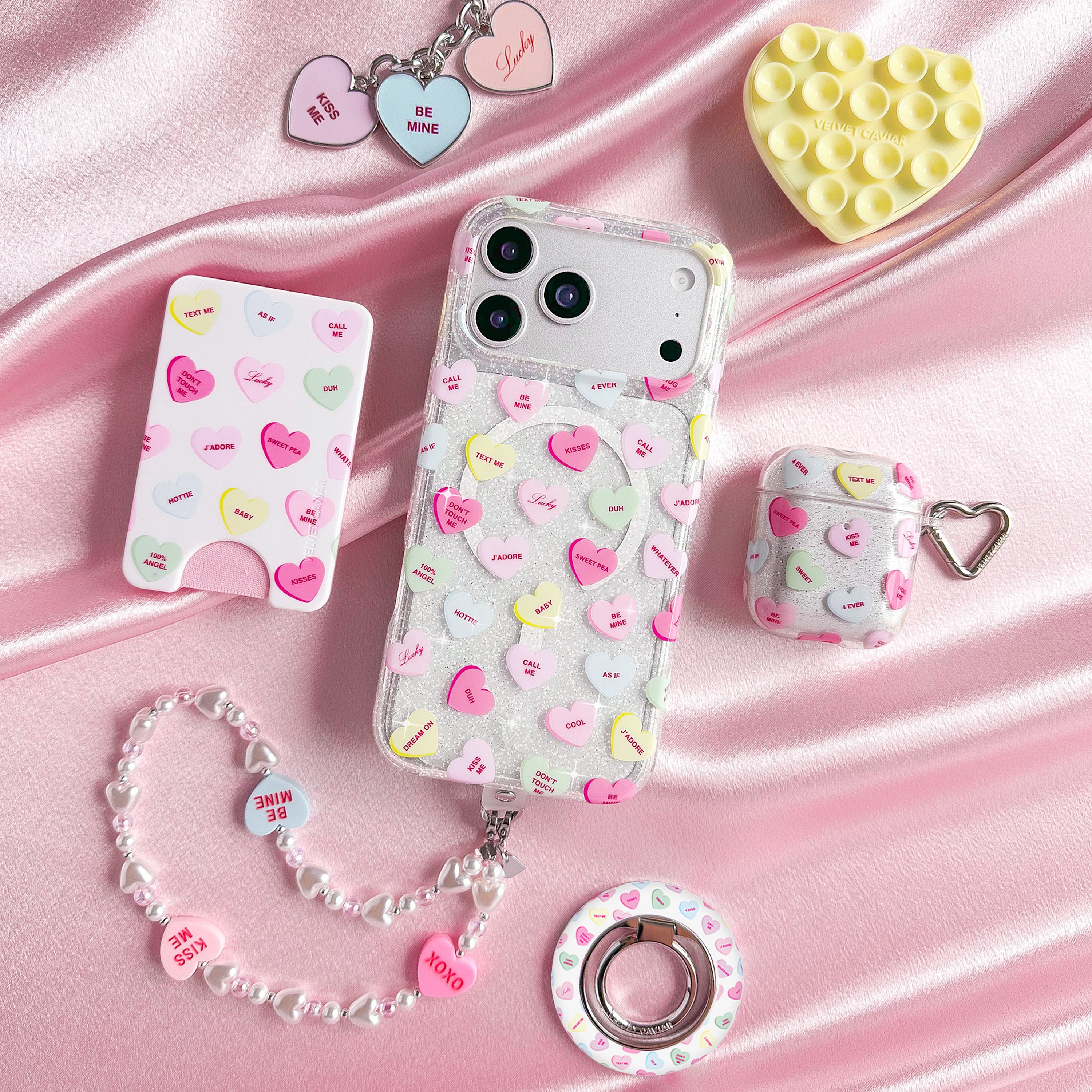 Sweet Hearts Pearl Chain Phone Charm